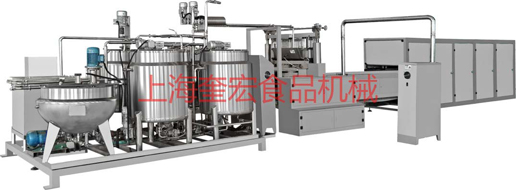 溶糖→过滤→熬糖→冷却→加添加剂→浇注成型→冷却→脱膜→烘房→包装→装箱